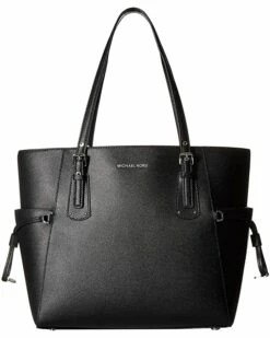- The MICHAEL Michael Kors® Voyager East/West Tote features a leather exterior, dual flat top shoulder straps, side exterior slip pockets, and brand name hardware at the front.